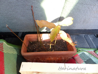 | 5 castaños en su maceta. La he llevado así pues la tierra estaba helada. |